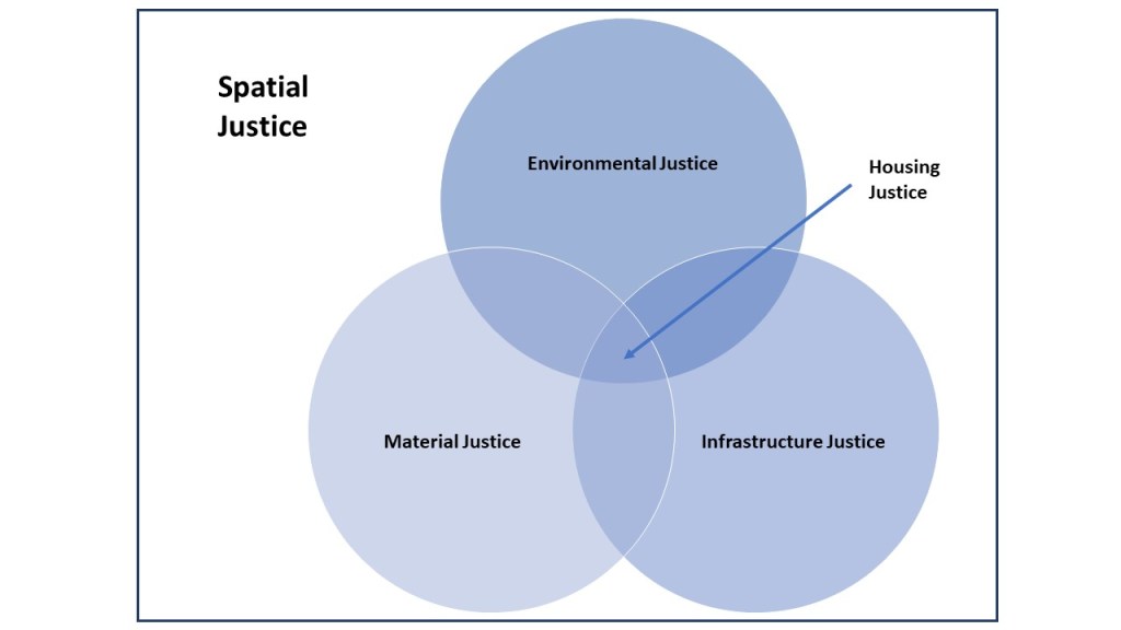 What would a housing justice panel look like? A roof that spans the three spectators? How does housing justice relate to other domains of justice? To sort through this complexity, I decided to create the following Venn Diagram: